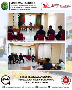 Ponorogo, 29 April 2026 – Sebagai bentuk komitmen terhadap transparansi dan akuntabilitas pengelolaan keuangan negara, Pengadilan Negeri Ponorogo menyelenggarakan Rapat Realisasi Anggaran.